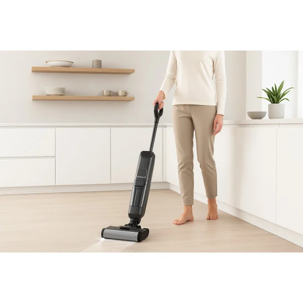 - Modes : auto-nettoyage / aspiration / lavage-séchage