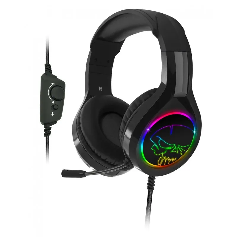 Casque Micro Gaming Spirit of Gamer Pro H8 LED RGB – Diamètre: Ø 50 mm – Réponse en fréquence: 20 – 20.000 Hz – Impédance: 32 Ω – Niveau sonore: 119 dB – Rétro-éclairage LED RGB Rainbow – Ecouteurs : Isolation phonique, coussins rembourrés, confortables – Arceau réglable rembourré – Télécommande filaire (contrôle du volume, Mute Micro) – Interface: Simple jack 3,5 mm (Audio + Micro) et USB (seulement pour le rétro-éclairage) – Rallonge Double Jack 3,5 mm (Audio & Micro): 1 mètre – Longueur du câble: 2 m – Microphone omnidirectionnel fléxible – Prise: Jack 3.5 mm – Poids: 250g – Couleur: Noir – Compatible PC / PS4 / Xbox One / Nintendo Switch – Garantie 1 an
