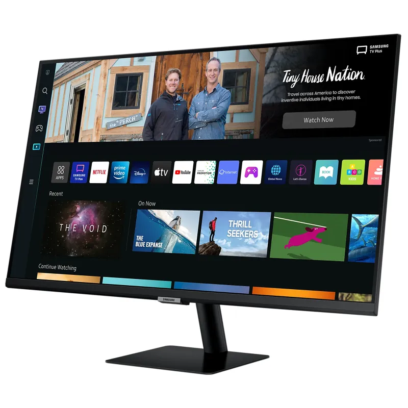 Ecran Samsung Smart M5 32″ FHD – Flat – Résolution (1 920 x 1 080) – Luminosité: 250 cd/m – Contrast 3 000:1 – Taux de rafraîchissement: 60 Hz – Format de l’image 16:9 – HDR10 – Haut-parleur – Smart TV – Game Bar 2.0 – Auto Source Switch+ – Mode Eye Saver – Ultrawide Game View – Bluetooth – WiFi – HDMI – USB – RJ45 – Dimension : 716.1 x 424.5 x 41.8 mm – Garantie 1 an