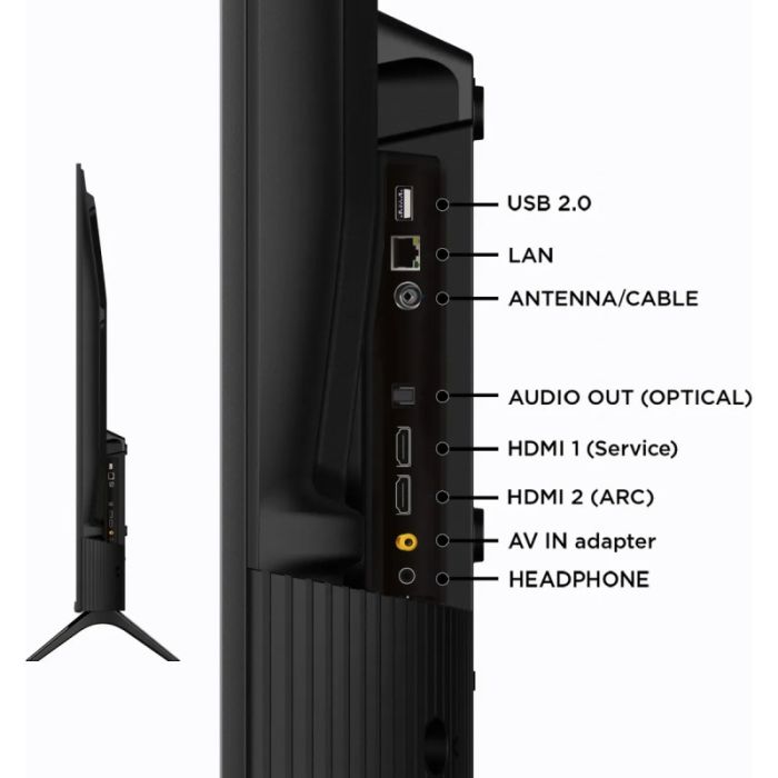 Tv iFFALCON by TCL 40″ Smart S55 FHD 2K – Résolution: 1920×1080 pixels  Google TV – Format d’image: 16:09 – Taux de rafraîchissement: 60 Hz Full HD – Dolby Audio – HLG – HDR 10+ – Mode de visualisation multiple – Mode Jeux –  Puissance sonore: 2x10W – Google Assistant, Google Cast, Profil Enfant – Connectivité: Wi-Fi, Bluetooth 5.0 – Connecteurs: 2 x HDMI | 1 x USB |1 x LAN | 1 x SORTIE AUDIO NUMÉRIQUE – Design métallique sans cadre – Dimensions avec support: 892x184x558 mm – Garantie: 2 ans