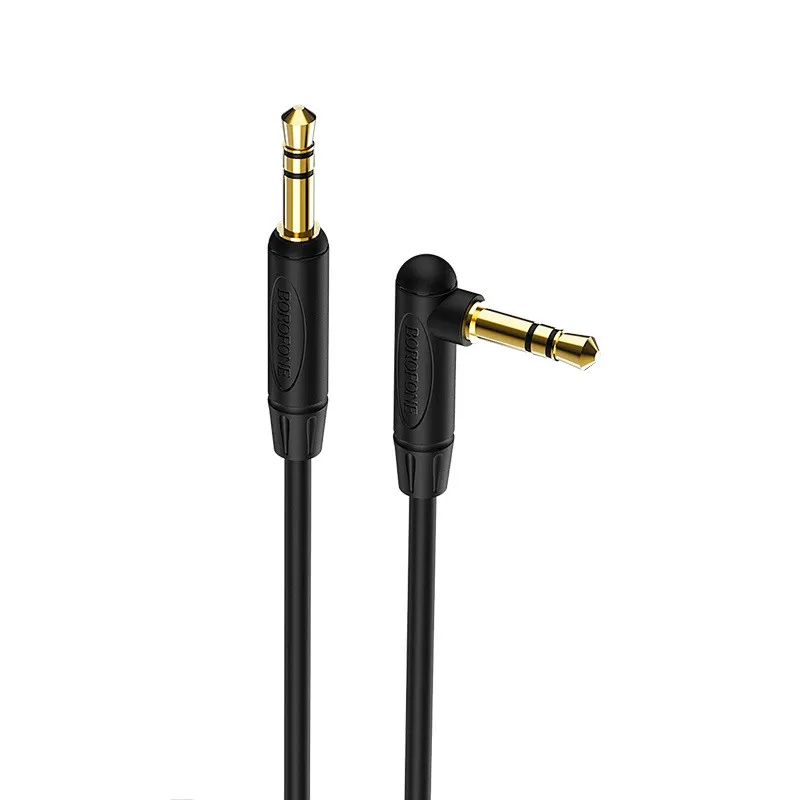 Câble audio AUX BOROFONE BL4 – Câble jack 3,5 mm vers jack 3,5 mm, audio AUX – Matériau extérieur: TPE – Conception coudée – Longueur: 1 métres – poids: 10 g – Couleur Noir