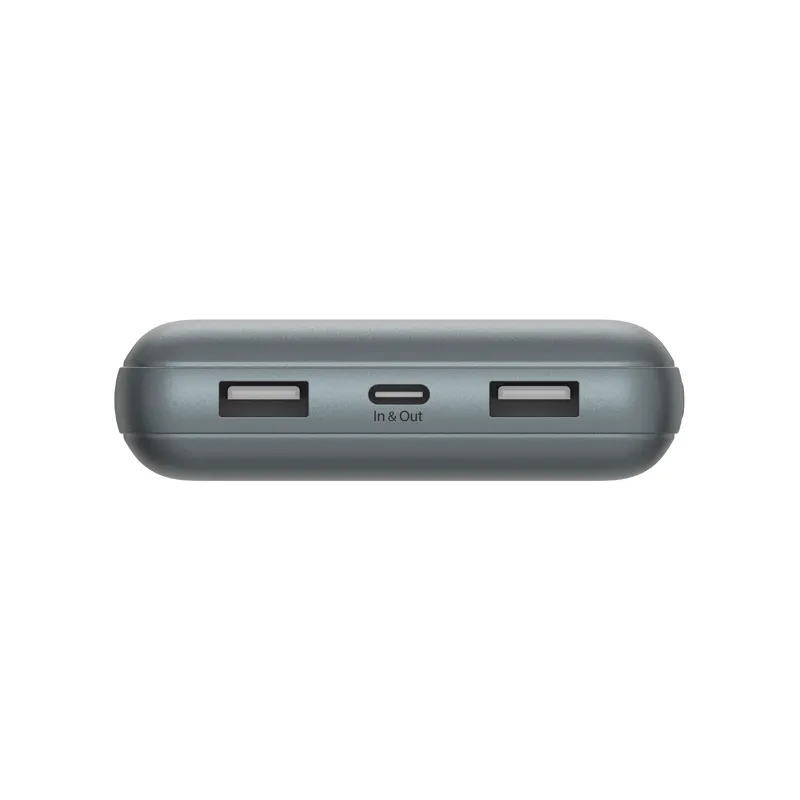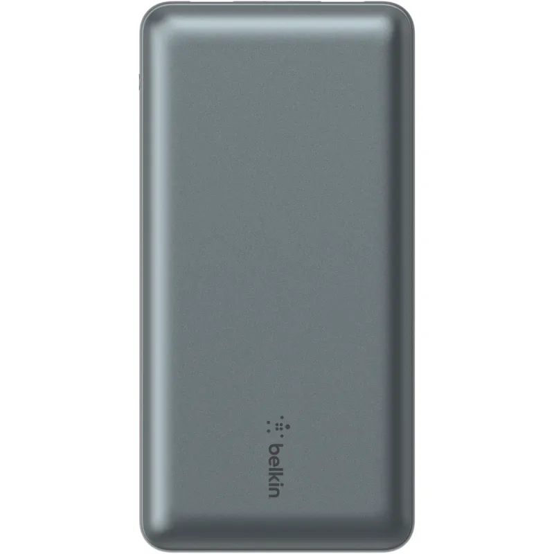 Power Bank Belkin BOOSTCHARGE – batterie externe avec Capacité de : 20 000 mAh – Recharge de trois appareils (max) avec deux ports USB-A (12 W) et un port USB-C (15 W) – Puissance de charge 15 W – Grande autonomie de batterie pour 78 heures (max) – Recharge rapide de zéro à 50 % en 35 minutes (iPhone 15 Pro) / en 45 minutes (Samsung Galaxy S23 Plus) – Voyant LED pour indiquer le niveau de charge restante de la batterie externe – Matériau plastiques – Couleur Gris – Garantie 1 an
